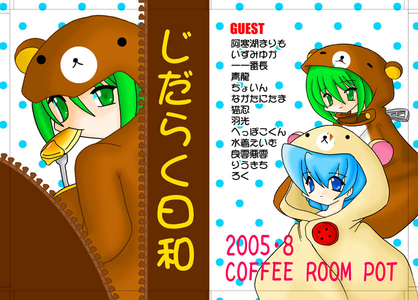 リラックマ娘本第2段! あれだね、「当たって砕けろ」って言うの はいい言葉だね。 あるいは「ダメでもともと」ですか? 前回の本は共同で出したのですが、今回は 前回協力者が「僕もう同人は・・・・」とか言 い出しまして。 仕方が無いのでおいらの 一人誌だったのですが、それじゃぁ寂しい からと言うことでゲストをお願いしたので すが。 すごくたくさんの方から寄稿して いただきました。 ゲスト様一覧 本当に皆様ありがとうございました! 次回もよろしくですv ・・・・・・・・・次回? |