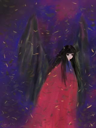 天使の羽が、やたらときれいな絵になってしまったことに漠然とした不安を感じて、その絵をコピーしてダークサイドの絵に描き替えてみました。