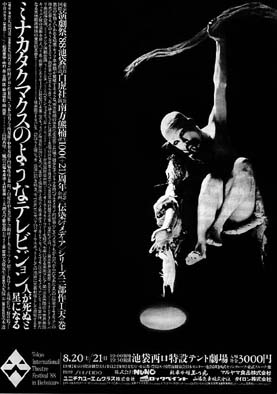 実を言えば、数年後に同じ演目を湘南の海岸の野外劇場で観てこちらも記憶に焼き付いているのですが、初秋の台風翌日ということもあり、澄み抜けるような星空のもと、強風に寒さを感じながら観た時の洗練された印象とはまったく違っています。暑さ、熱気という過酷なファクターが、公演の内容と結び付いた時、この日の舞台は伝説となったのでしょう。この時の公演については、別冊太陽「現代演劇60's〜90's」という本にも書かれています。