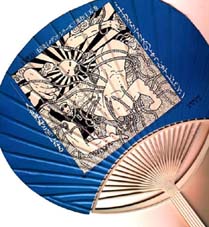 会場の公園には、まだ強烈に西日が照りつけるうちに行き、入場待ちの列に加わりました。列の人達にはひさうちみちおのイラストと公演名が記されたウチワが配られ、観客に加え公園の住人たちもが、せめてもの涼をとるために一生懸命であおいでいました。テント前にはノボリや花がずらりと並び、送り主の著名な文化人や芸能人の名前が連なっています。これからはじまるのがどんなものなのか、いやがおうにも期待は高まっていきました。開場してテント内につめこまれた満員の観客の意識も、すでに祭のように高揚していたように思います。