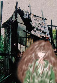 バックの写真は、神戸の異人舘で撮ったもの。震災なのか、ただの火災なのかはわかりませんが、とにかく焼けた館の廃墟でした。