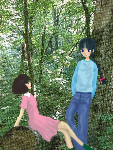 緑の中の二人