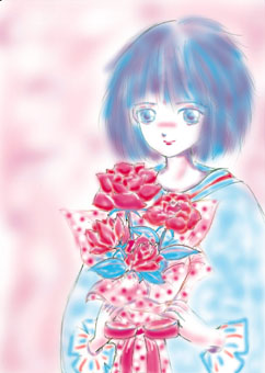 「21世紀幸福読本」の表紙の絵は、2色印刷だったのでC版とM版の色だけで描き、特色で印刷しましたが、そのあと上からフルカラーで彩色したものです。大体、バラなんて初めて描きました。