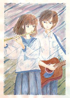 ペン入れしようと思って漫画用の原稿用紙に下描きしてあったイラストに、結局はカラーインクで彩色。爽やかすぎる絵。
