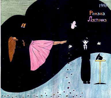 自分で使うぴあ・ダイアリーの表紙用に描いた絵でした。マットカラー紙にカラーインク。1年間持つものだという意識があって、構図とか、それなりに考えています。
