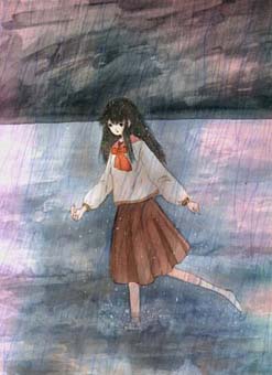 B4版のカラーインク画でしたが、スキャナーのサイズの関係で全体は入っていません。私にとっての海は、夏の海水浴ではなくて晩秋から春の始まりくらいの季節なんです。