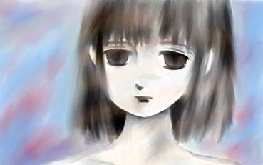 自分では、この生気のない瞳が非常に気に入っている絵です。