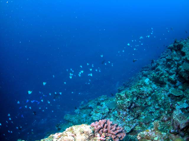 凄い凄いとっても凄いカスミチョウチョウウオの群れ。寄っても逃げて散っちゃうので撮影は難しいです。