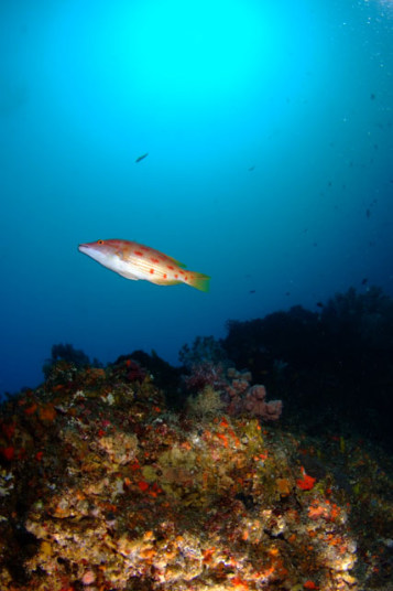 この辺りでよく見かけるキツネダイをバックに太陽をいれて仰ぎ気味に。