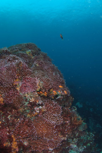 一面のイソギンチャクに着いているキンギョハナダイ。