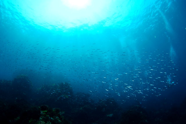 輝くキビナゴの群れ。