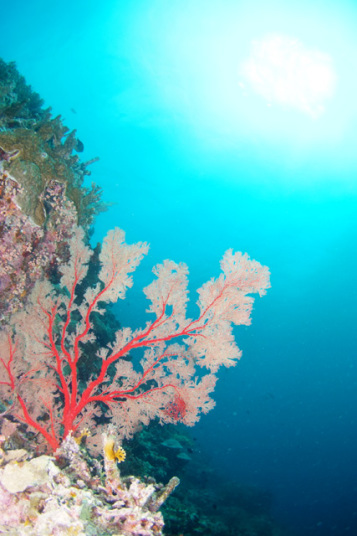 ちょっとづつ復活しつつあるイソバナ。太陽をバックにして撮してみました。