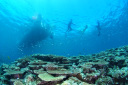 やや睡眠不足気味。ちょっとふらふらダイビング。しかし水の中は別世界。おおっ遠くまで見える。おおっ群れだ。大物でないけど群れだ。流石にこれだけ居ると迫力満点。