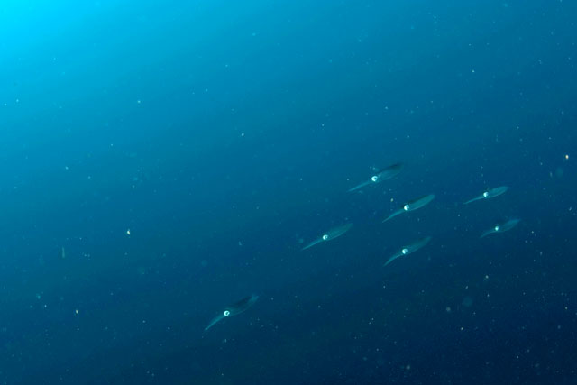 横を通り過ぎて行くアオリイカの編隊。