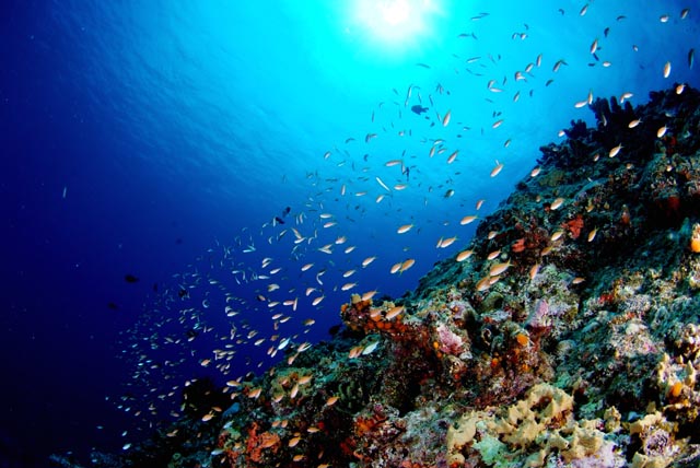 ぴょこんと突き出た根にはキンギョハナダイが群れていました。ここにカメが居ればベストなのですが。