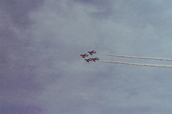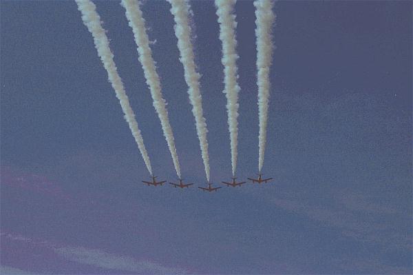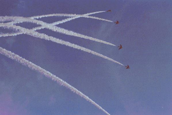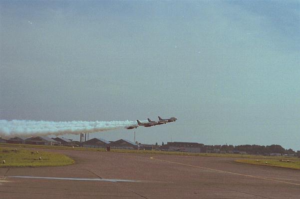 4.デルタ隊形での275°ターン(会場右手から進入し、275°旋回し、観客の頭上を飛び越えて行く)