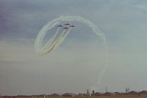 当時の航空祭は、今から考えると誰もいないに等しく、ブルーインパルスの展示飛行の直前に最前列に行けました。