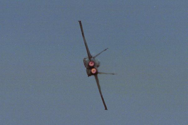 ダーティ形態での飛行 この後アフターバーナー に点火して強引に加速 上昇していった。 |