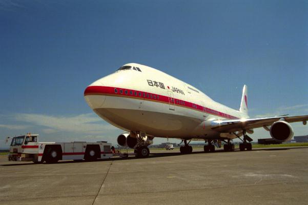 政府専用機。漢字で書かれた「日本国」が印象的である。