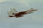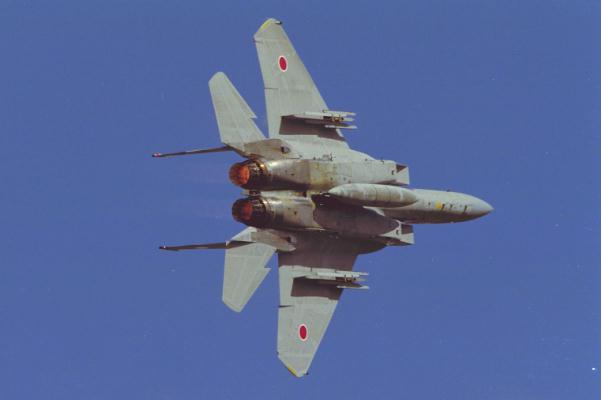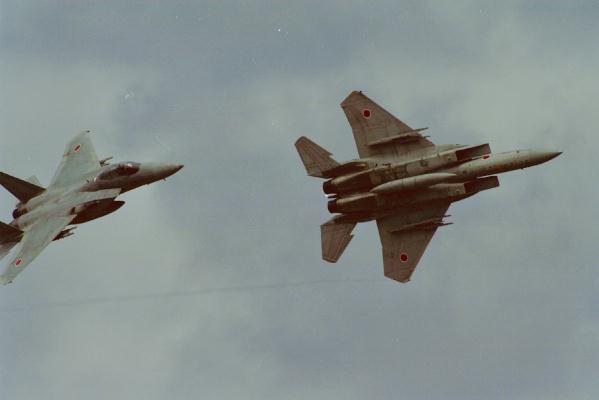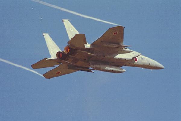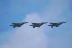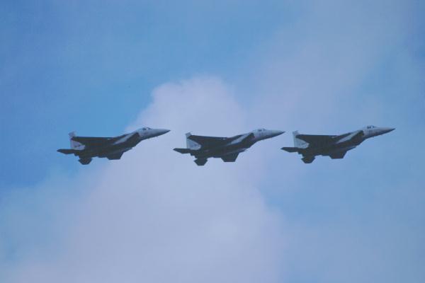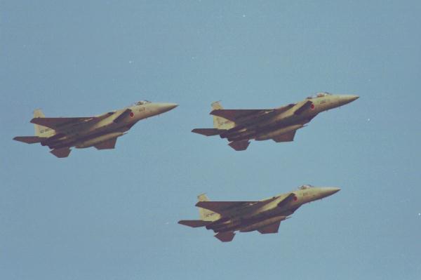 エシロン編隊で飛行する3機のF-15 |