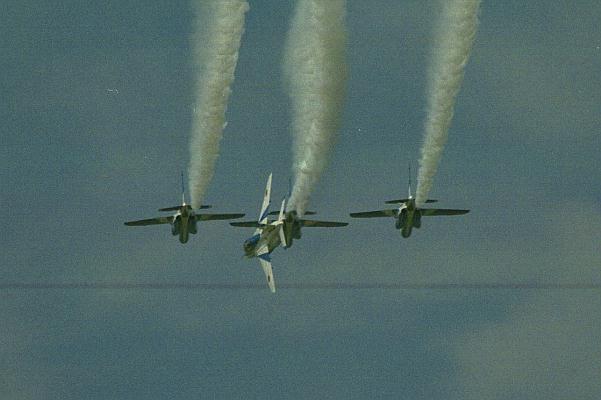 好天のもと開始されましたが、午後のブルーインパルスの展示飛行直前に雷雨に見回れるアクシデントがありました。 天候回復の後、実施されました。 写真をクリックすれば、大きな写真が表示されます。