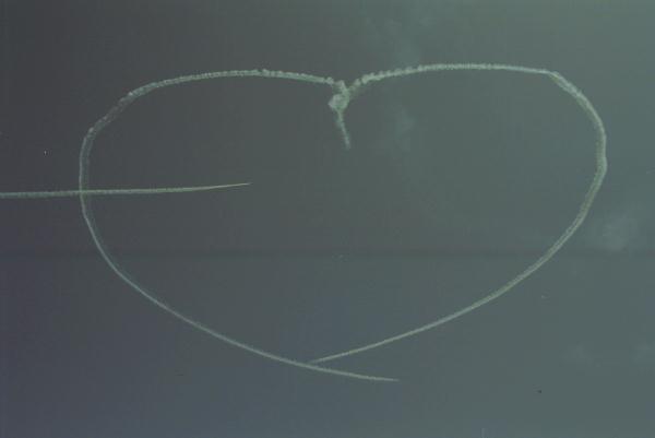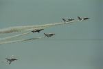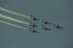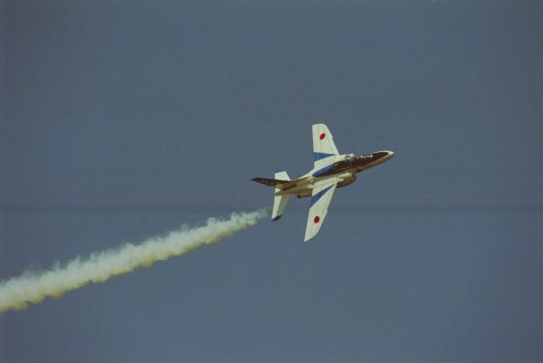 天気は快晴。ブルーインパルスのホワイトスモークが青空に映えます。