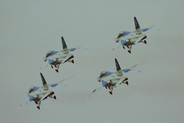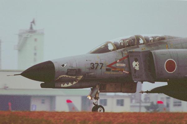 新田原基地の魅力は、滑走路のすぐ近くまで行けること。F-15が、F-4が、アフターバーナの轟音を響かせ、すぐ目の前を離陸して 行く。いや、あれは音ではない。音は耳で聞くものだが、あれは全身に浴びる。大気が震えるのを体感する。言葉で言い表すすべを 私は知らない。知りたい人は、私と同じように来年新田原航空祭に出かけ、滑走路南側駐車場に行くと良い。 それを体感できるだろう。 写真をクリックすれば、大きな写真が表示されます。