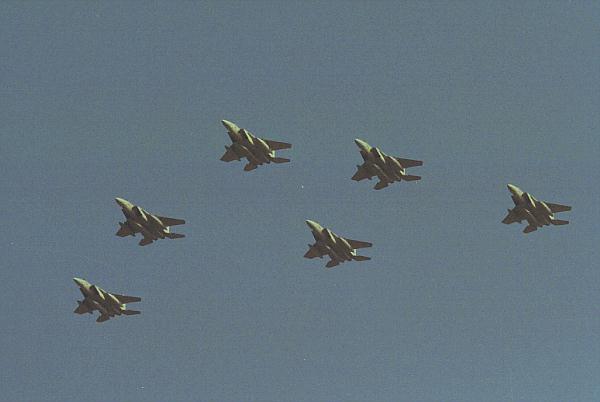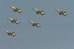 6機がエシロン隊形で飛行し端から順次、離脱して行く | ![]() |