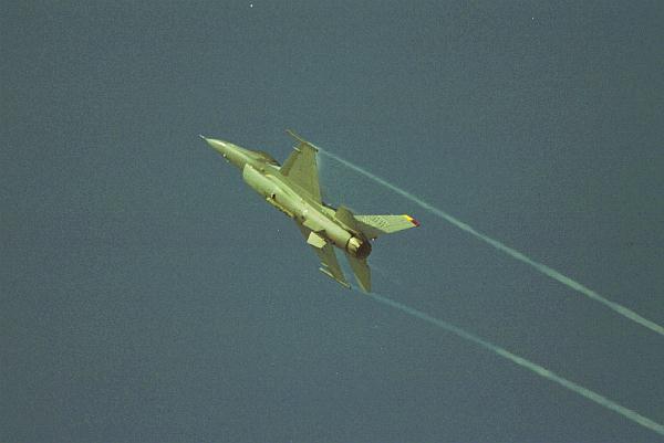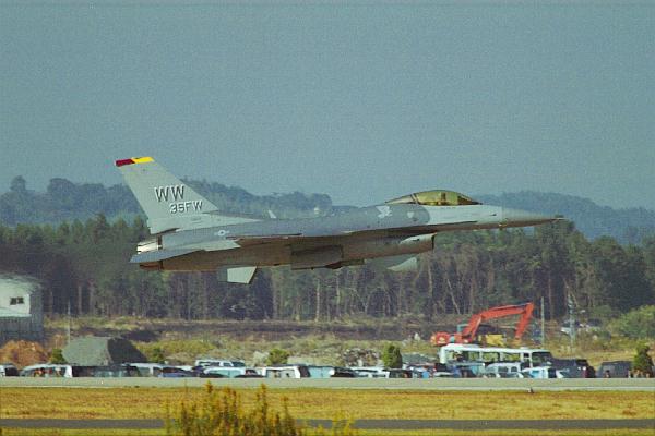 高機動飛行展示のために離陸するF-16 2回目の展示飛行 |