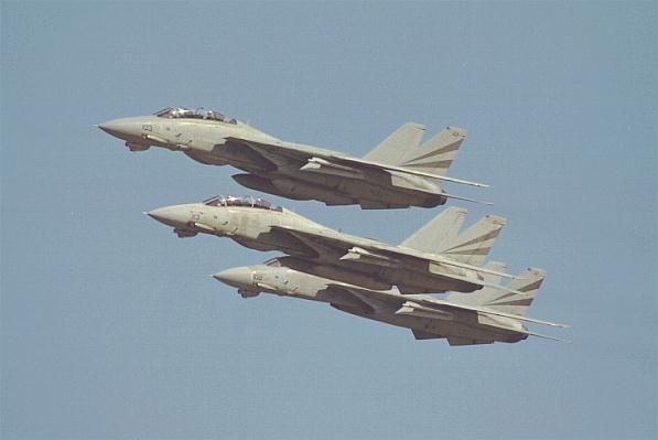 エシロン隊形で航過するF-14 |