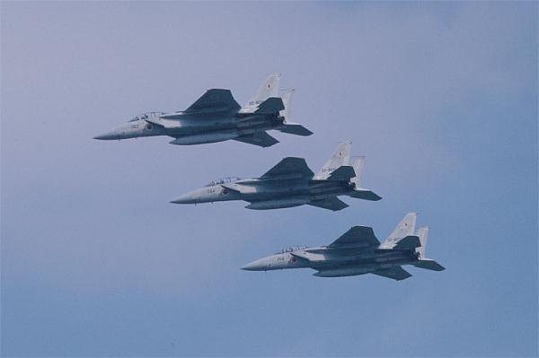 (12)3機が東よりダーティ形態でデルタ隊形を組んで進入してくる。左右の