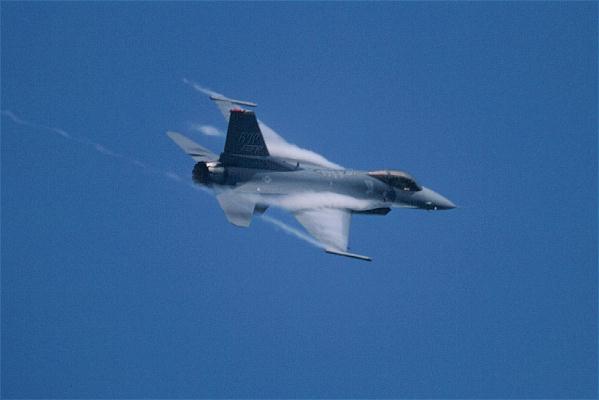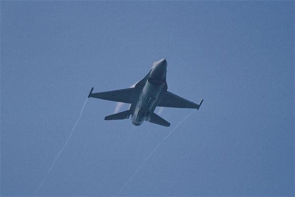 F-16の展示飛行は何度か見ている。離陸後低空で滑走路端まで高速で飛んでいき急上昇というのが印象的である。また、滑走路の端から端までを行き来し、常に視界内で飛行を行うのも特徴である。