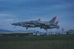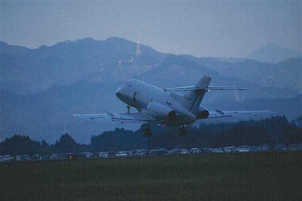 新田原基地への到着は午前7時ごろ。薄暗い中、オープニングフライトに向け離陸が開始される。