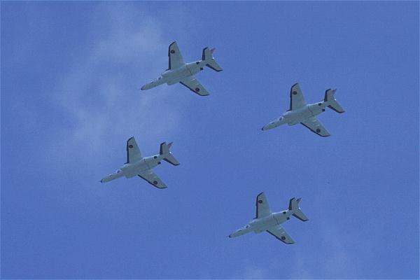 ダイアモンド隊形で進入し、右左機が編隊から離脱
