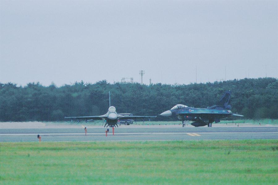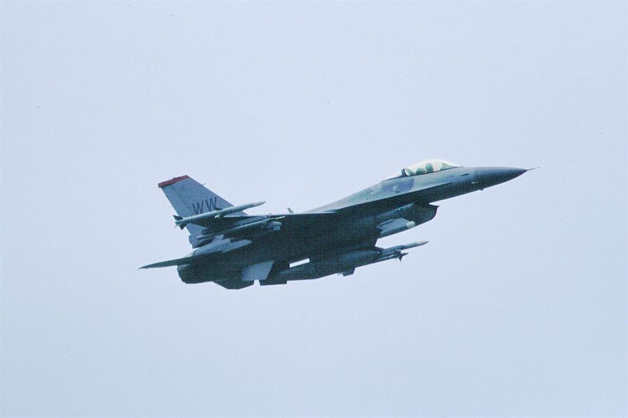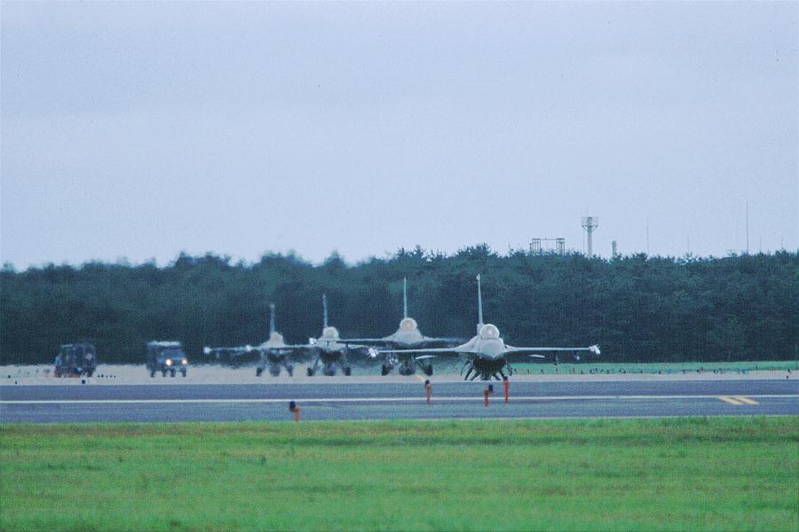 こちらはアメリカ空軍のF-16.タキシングしていたのは4機だが離陸したの3機のみ。 |