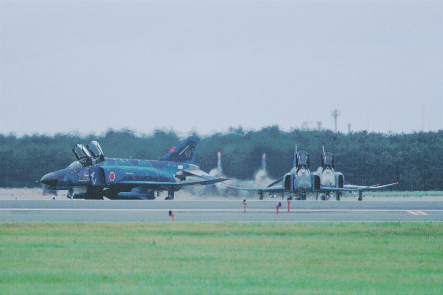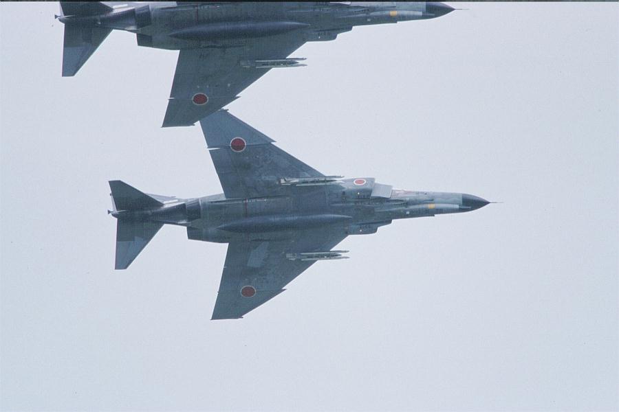 | 離陸するF-4。ASMをぶら下げたまま、オープニングフライトをしました。また、濃淡青迷彩のF-4は3機確認できました。 |