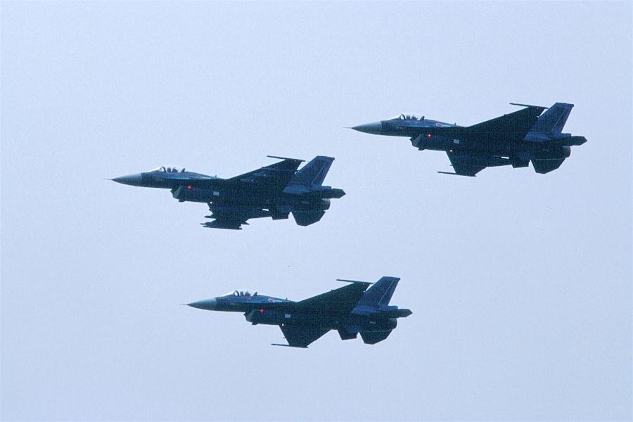 | オープニングフライトの先頭を切るF-2の3機編隊 |
