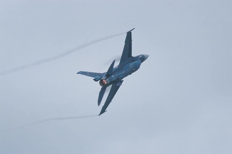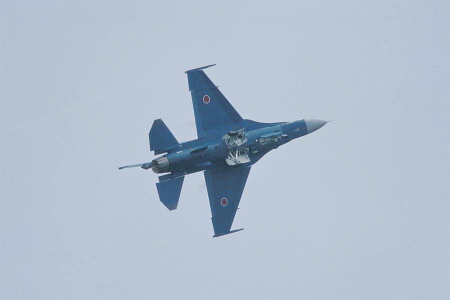 離陸後車輪を出したまま、360度旋回するF-2。 |