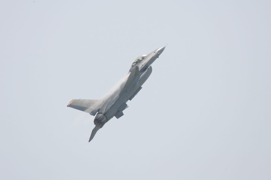 低速からエンジンパワーで急上昇に持ち込むF-16。力技で上っていきました。 |
