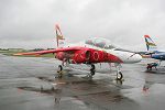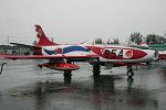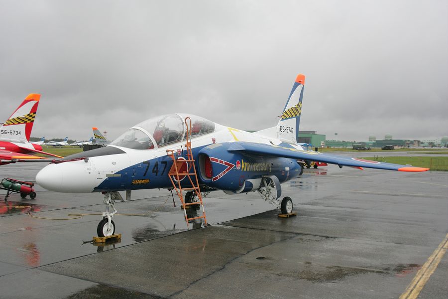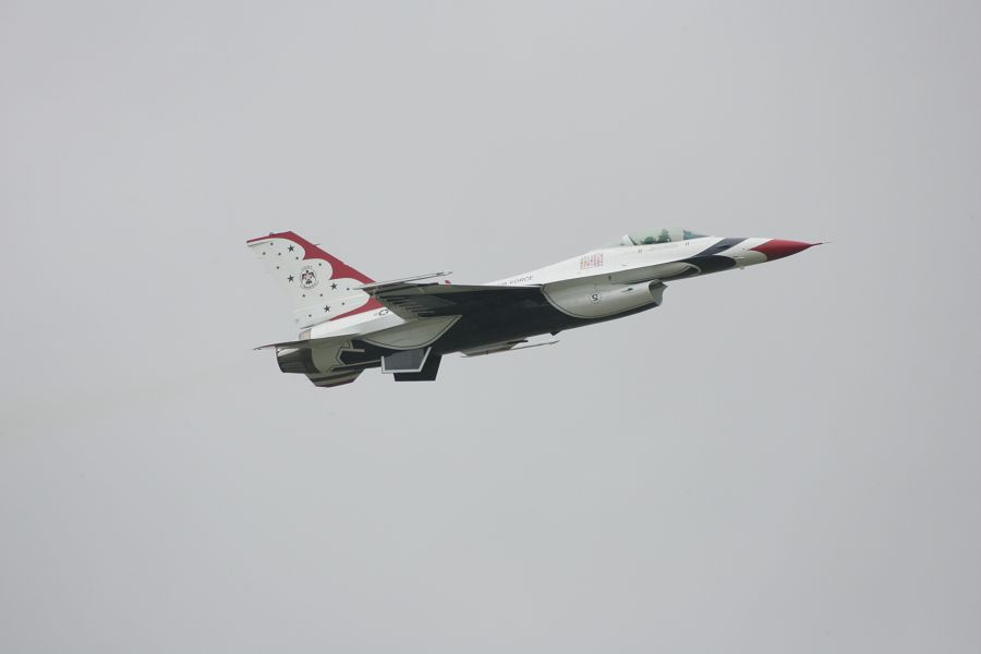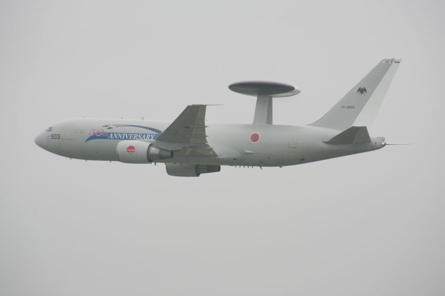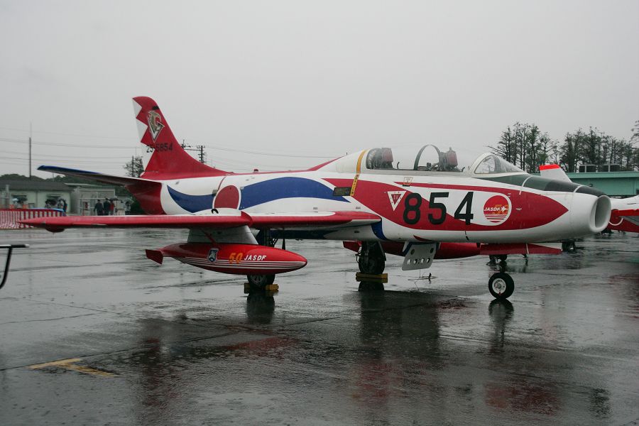 雨。朝から最後まで、ザザ振りの雨です。米空軍のサンダーバーズが来ているというのに〜。T-4とE767が、何度も航過飛行を行う。E767が360旋回したのが、機動といえば機動飛行でした。それでも、サンダーバーズのデモ予定時刻には、雲底が高くなり、雲越しに太陽が見えます。サンダーバーズは展示を試み、滑走路へ6機が進出します。まず、1機を離陸させ天候チェック。しかし、というか、やはりダメ。演技不可。残りの5機が1機づつ離陸し、そのまま三沢基地へ帰投していきました。ブルーインパルスは中止でした。