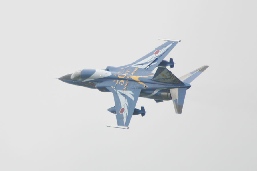 築城基地から飛来し対地攻撃展示を行う記念塗装のF-1。2機飛来しましたが、もう1機は通常塗装でした。 |