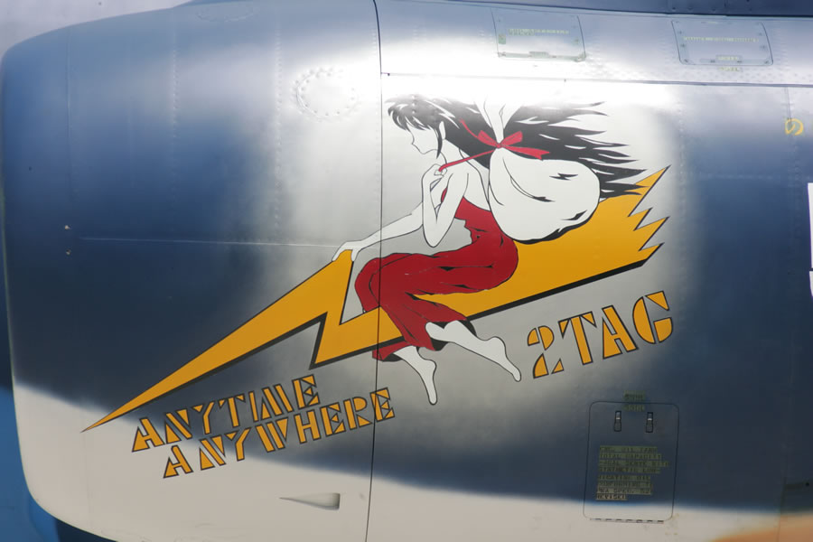 機首が出てしまいました。尾翼が撮れているカットがこれしかなくて・・・。垂直尾翼内側は黒馬の頭が書かれています。外側は50周年マークです。 |