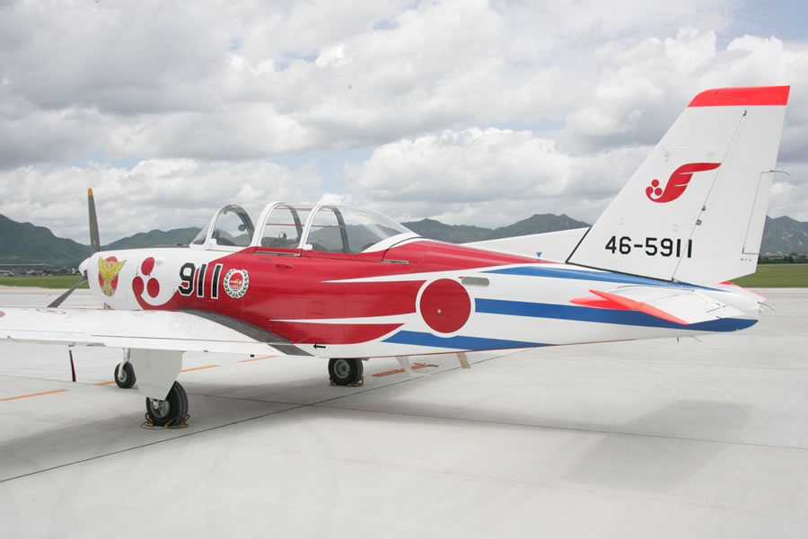T-7の記念塗装機。機首には金鷲が描かれています。 |