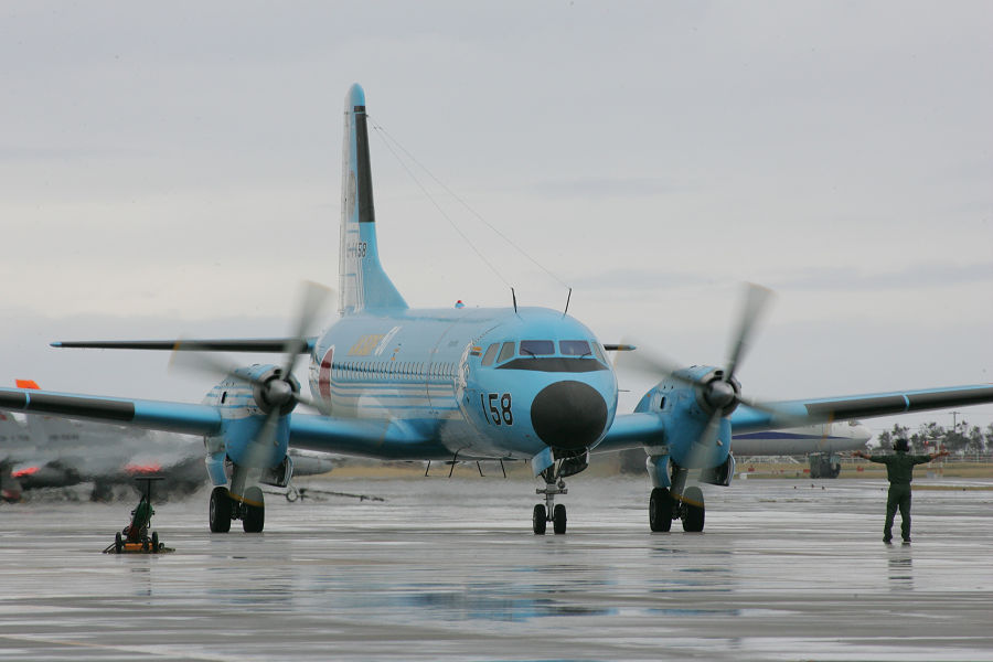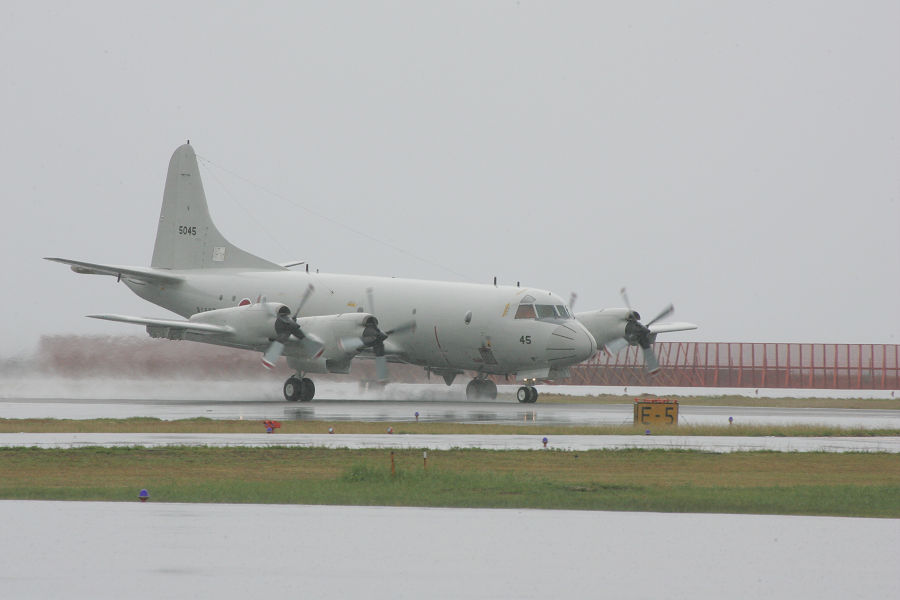 13:30ごろには雨も止んできました。哨戒飛行に飛び立つP-3Cです。展示飛行ではありません。 |
