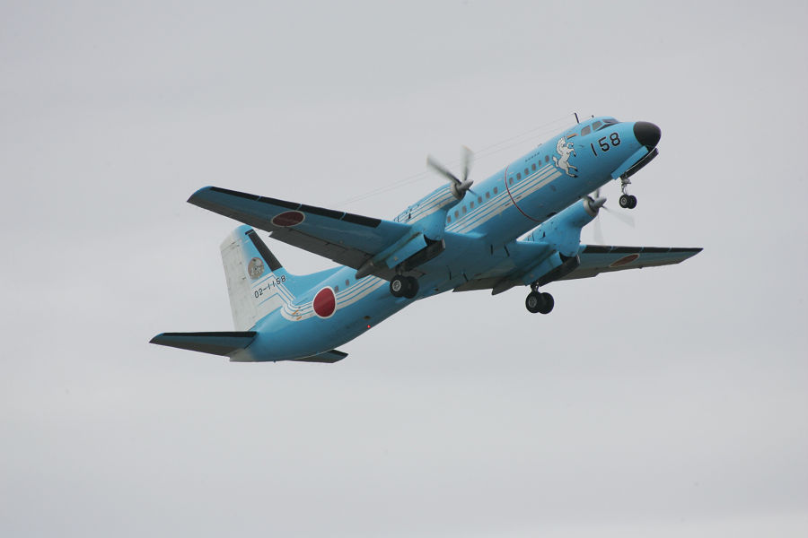美保基地へ帰投のためエンジンスタートした50周年記念塗装のYS-11。 |