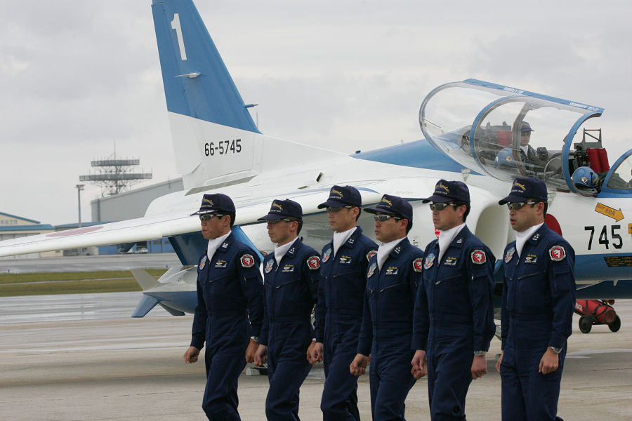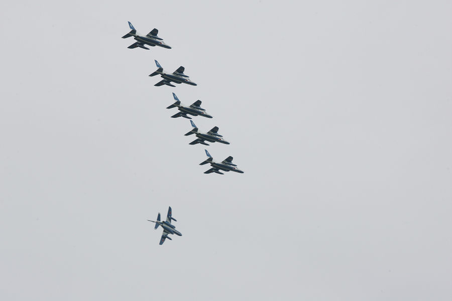 2時間遅れで飛来したブルーインパルス。荒天のため、飛来が危ぶまれましたが、天候の回復を待ってきてくれました。 |