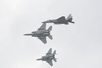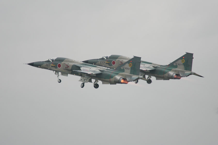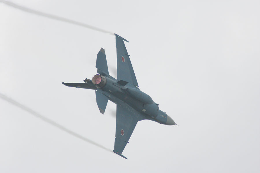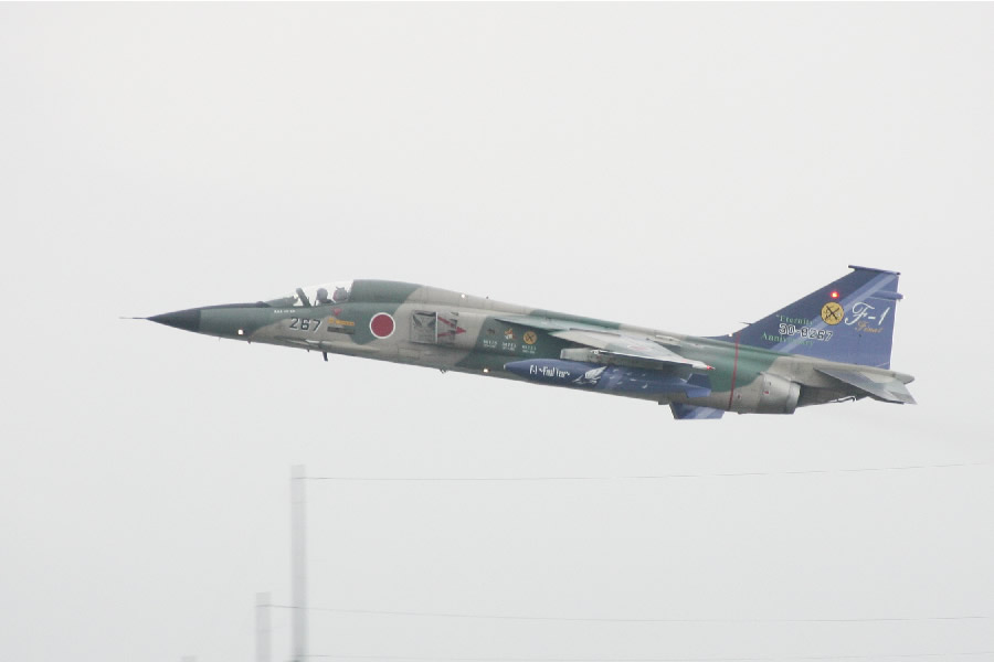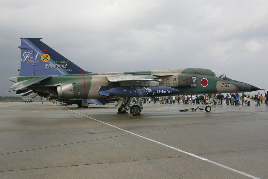 F-1が今年度(平成17年)末に退役となります。最後の展示を見るべく築城に行ってきました。残念ながら、天候は雨。朝からじゃんじゃん降ってます。しかし、8:30頃には雨が止み、飛びました。一方、他基地から飛来しての、展示飛行はすべてキャンセンルされました。また、昼ごろ空挺降下のためのC−1が、地上滑走する寸前に、天候が急変し大雨となり、C−1も飛行取りやめ。結局、F−1、F−2、F−15と築城所属機のみ、予定通りの展示飛行を行いました。 詳細なリポートは、こちら。