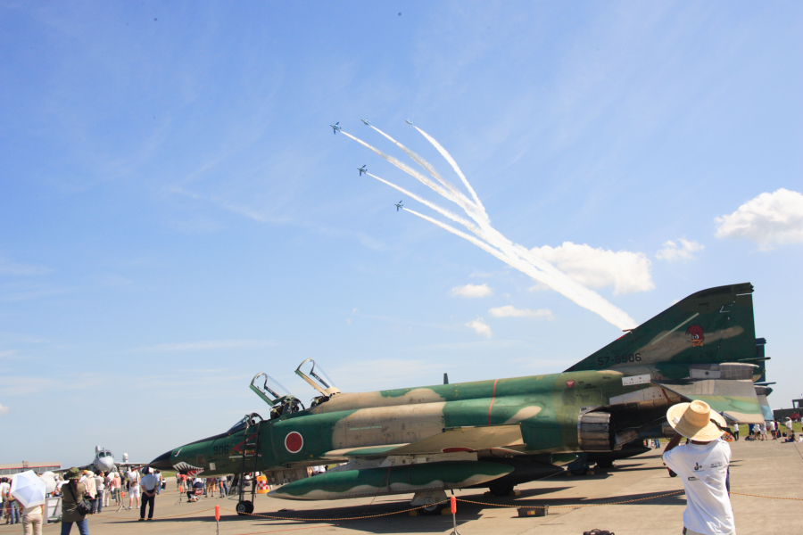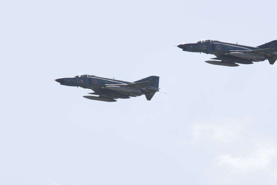 | オープニングフライトで、三沢基地から飛来して航過するF−4。 |