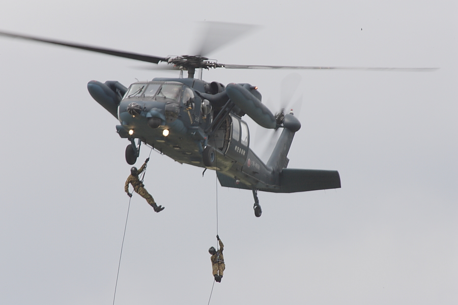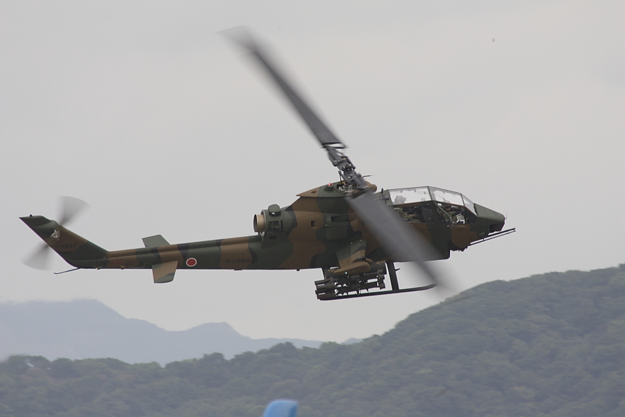 陸上自衛他のAH-1の機動飛行。AH-1が飛行展示を行うの航空自衛隊の航空祭では築城だけです。 |