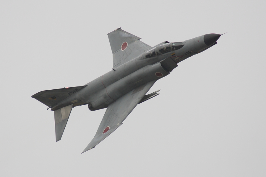 新田原から飛来し、機動するF-4。 |